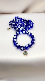 The Turkish glass evil eye symbolizes protection against negative energy, envy, and bad luck, believed to be cast by the "evil eye" of others;