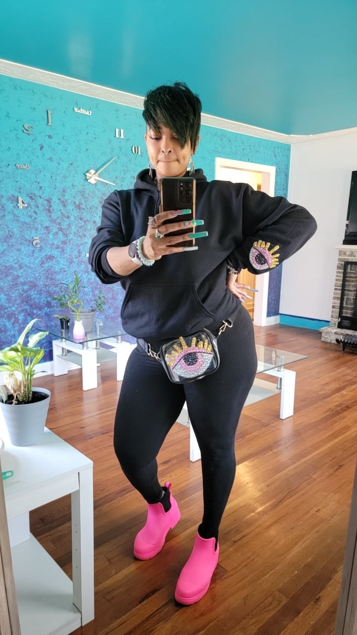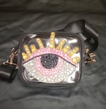 Pink Evil eye hip bag, hand placed rhymestones. Used