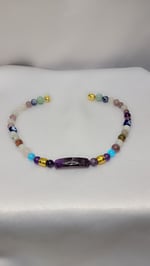 Natural GreadAAA mixed beaded stone Necklace/ Choker with 2 glass evil eye beads, 48 plus beads. 7mm, 8mm, 9mm, 10mm in size. One amethyst in the center of the necklace. Too gold tone spacers, and to gold tone buddha heads.