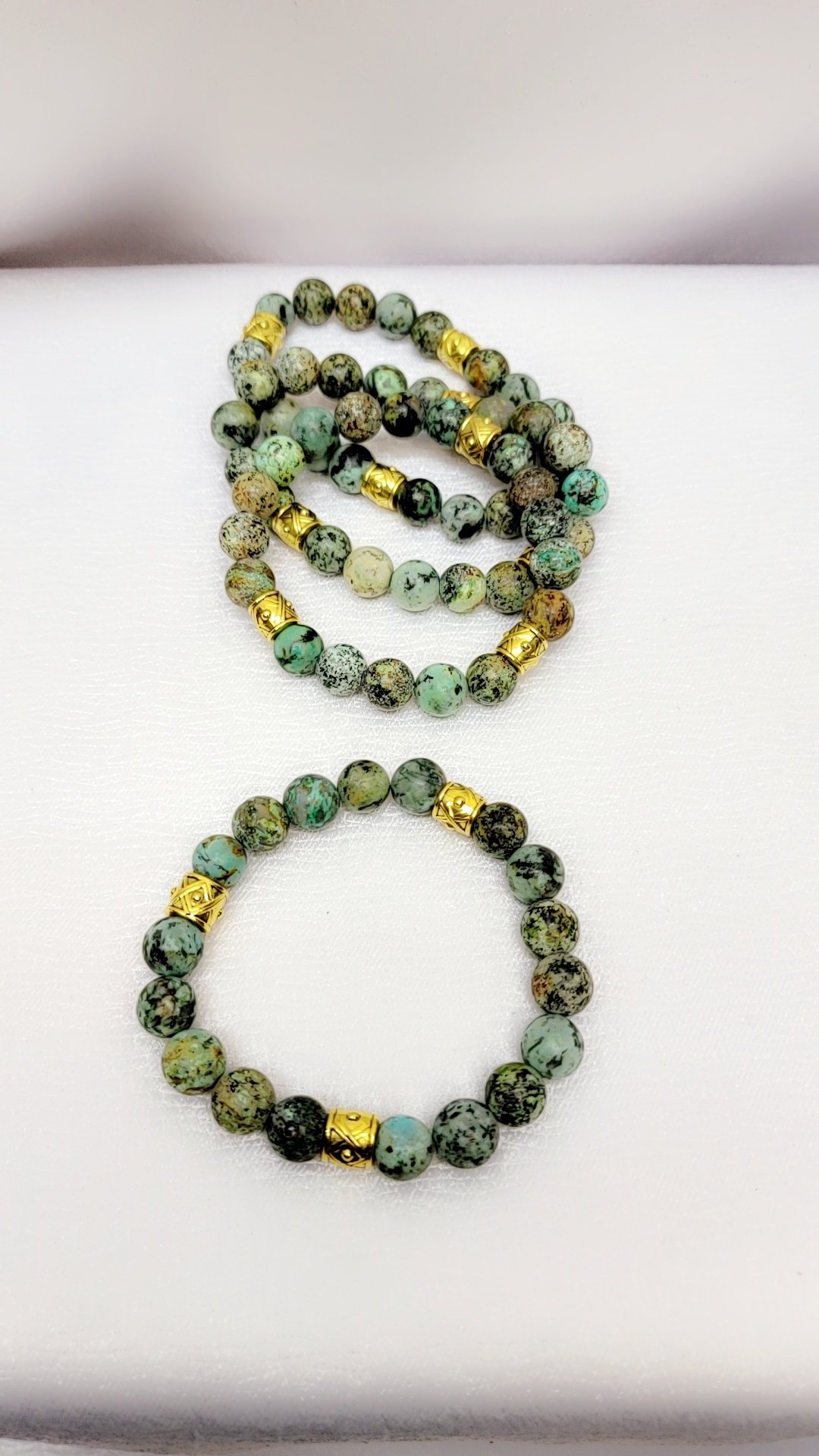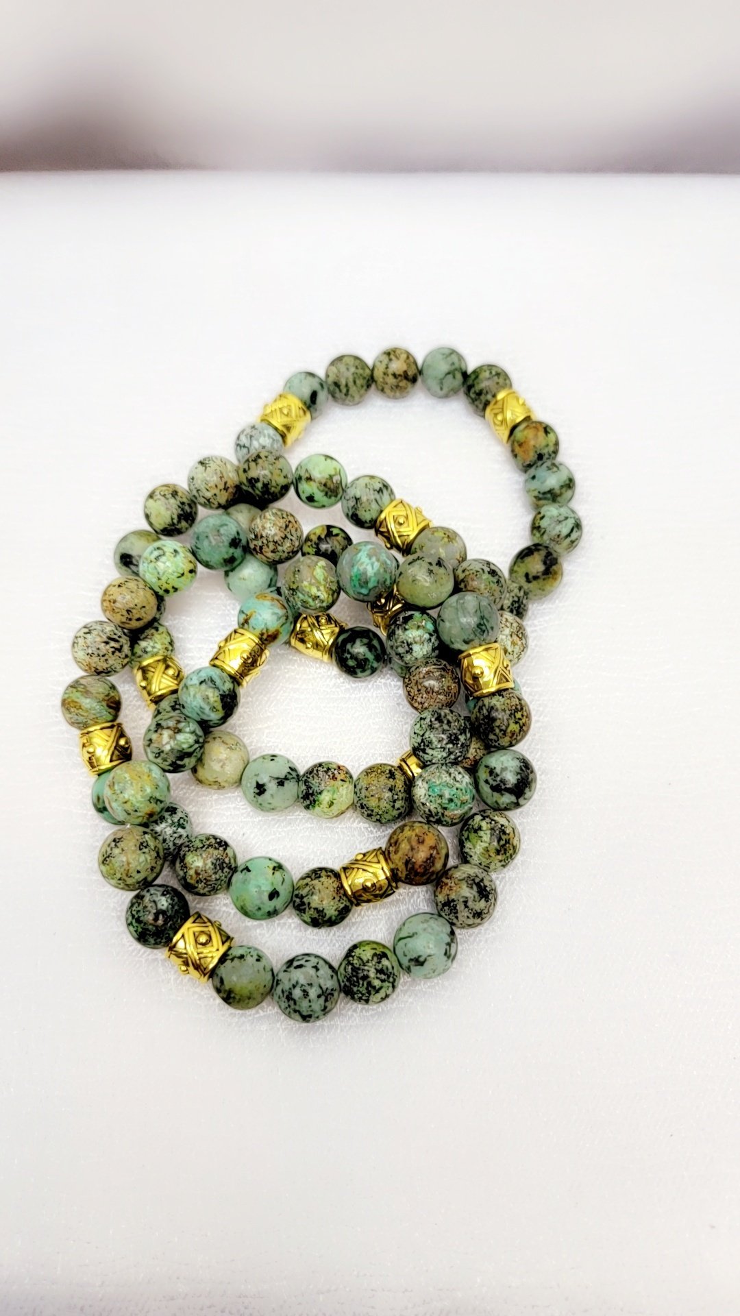 Matt African Tortoise Bracelets. With gold tone spacers. Beads are 10mm in size. Brealects size, L/XL