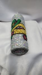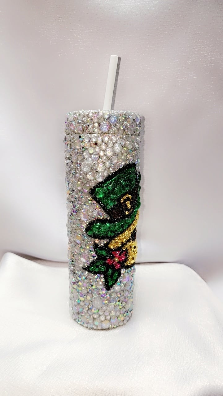 Tall 16oz tumbler , Gold lips. Green hat silver, gold , pink, and black hand crafted. cup stands up to 369° Heat dishwasher safe .